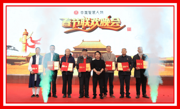 图为:中国聪慧人物春节联欢晚会导演欧阳东先生免费为部门国粹家和企业家颁布牌、证书